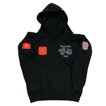This Telford ABC AWDis Childrens Pullover Hoodie comes branded with the Telford ABC logo embroidered to the left breast and Fit2Box logo printed right breast along wit the Youtube and England Boxing logo to sleeve. The reverse of the t-shirt is printed with a big Telford ABC logo.… Read More